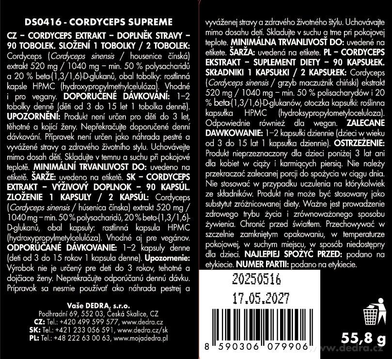 Gwarancja Mocy: Standaryzacja na 50% Polisacharydów i 20% Beta-Glukanów Nasz ekstrakt z Cordycepsu, podobnie jak inne grzyby w naszej ofercie, posiada podwójną standaryzację. To Twoja pewność, że otrzymujesz produkt o realnym, silnym i powtarzalnym działaniu, bogaty w kluczowe związki aktywne, takie jak beta-glukany, które dodatkowo wspierają Twoją odporność.
