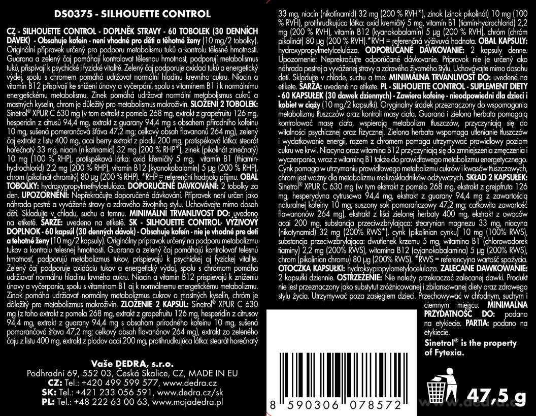 Sinetrol® na odchudzanie w zaawansowanej formule Silhouette Control. To opatentowany, przebadany klinicznie składnik, który skutecznie wspiera redukcję tkanki tłuszczowej i pomaga w modelowaniu sylwetki.